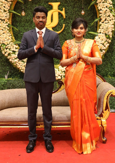 திருமண வரவேற்பு நிகழ்ச்சி மதுரை எல்லீஸ் நகரில் உள்ள MRC மஹாலில் காலை 11.30 மணிக்கு நடைபெற்றது. நிகழ்வில் நடிகர்கள் விஜய் சேதுபதி, சமுத்திரகனி, ஷாந்தனு பாக்யராஜ், கலையரசன், காளி வெங்கட், பால சரவணன், ஆதித்யா கதிர், இயக்குனர்கள் பா.ரஞ்சித், விக்ரம் சுகுமாரன், நாகராஜ், மான்ஸ்டர் பட இயக்குனர் நெல்சன், அதியன் ஆதிரை, ப்ராங்கிளின் ஜேக்கப், ஷான், பரத் கம்மா, விவேக் சோனி, தயாரிப்பாளர் S.R.பிரபு,பின்னனி பாடகர் கிருஷ், அந்தோணிதாசன் பாடலாசிரியர் மதன் கார்க்கி, உள்ளிட்ட பலர் கலந்து கொண்டு மணமக்களை வாழ்த்தினர்.