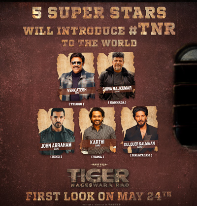 நடிகர்கள் வெங்கடேஷ், ஜான் ஆபிரகாம், சிவ ராஜ்குமார், கார்த்தி, துல்கர் சல்மான் ஆகியோர் இணைந்து வெளியிட உள்ள பிரமாண்ட படைப்பு “டைகர் நாகேஸ்வர ராவ்”